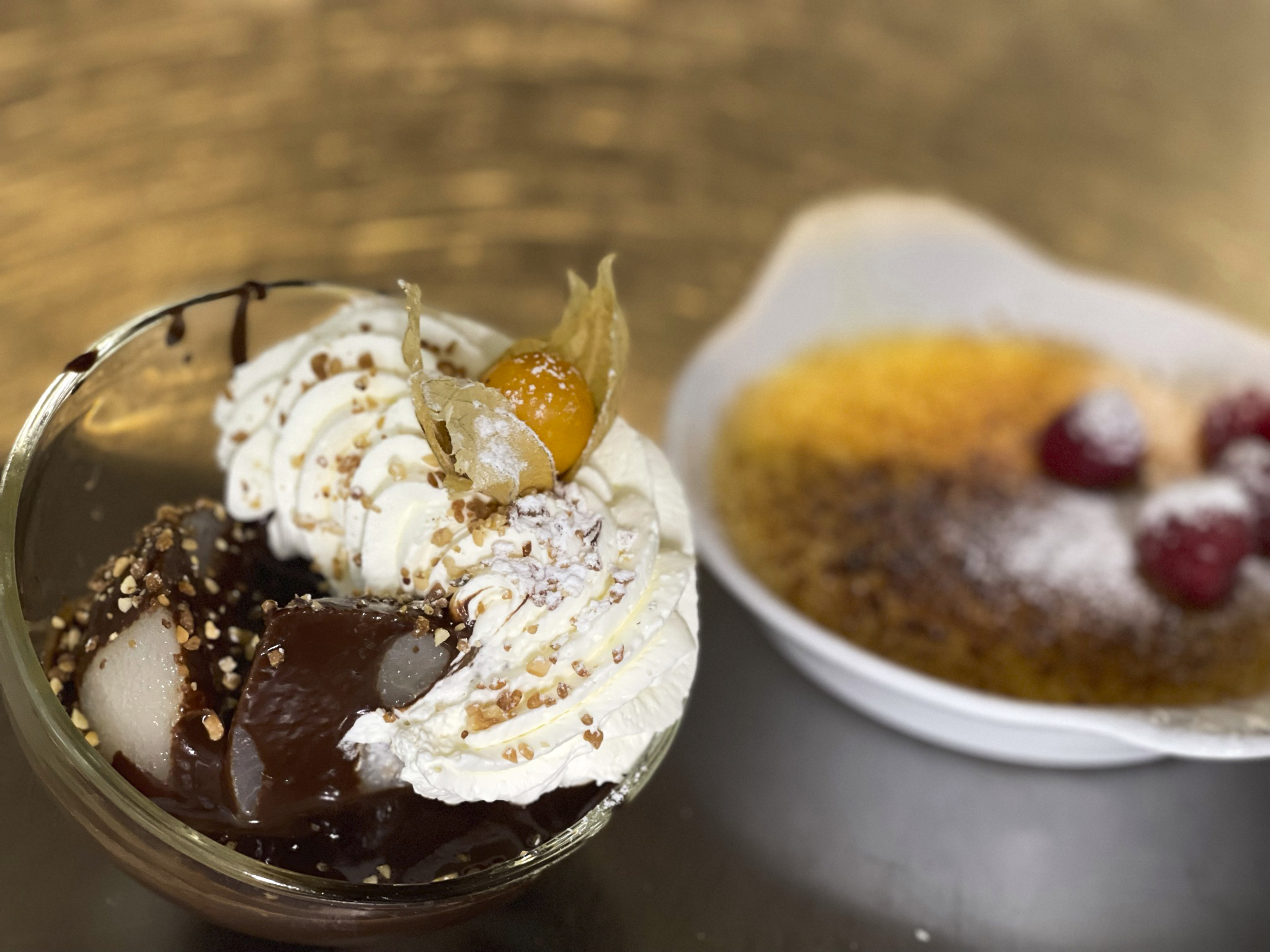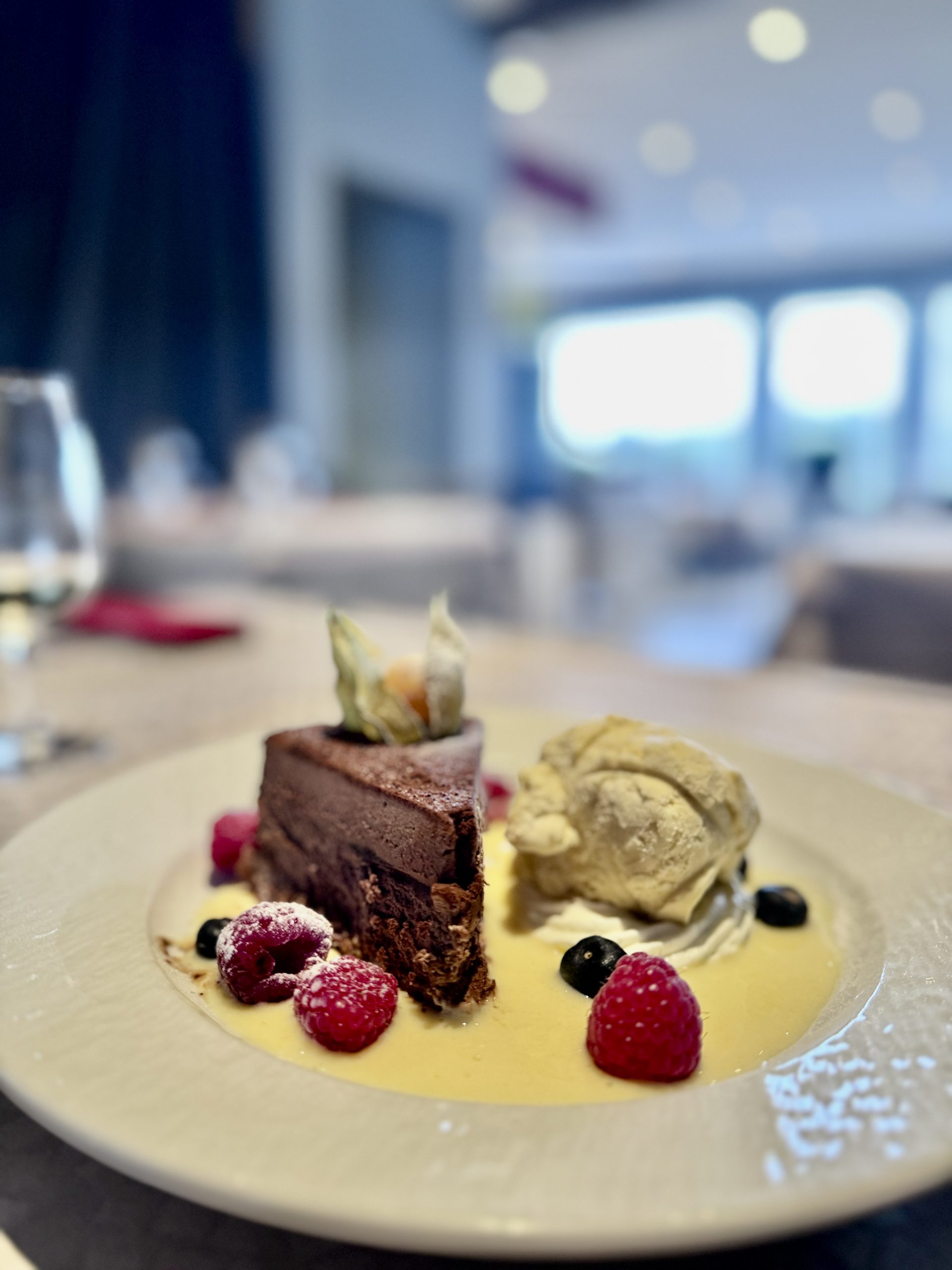 Parfait aux trois chocolats, crème anglaise 7 €/pers
